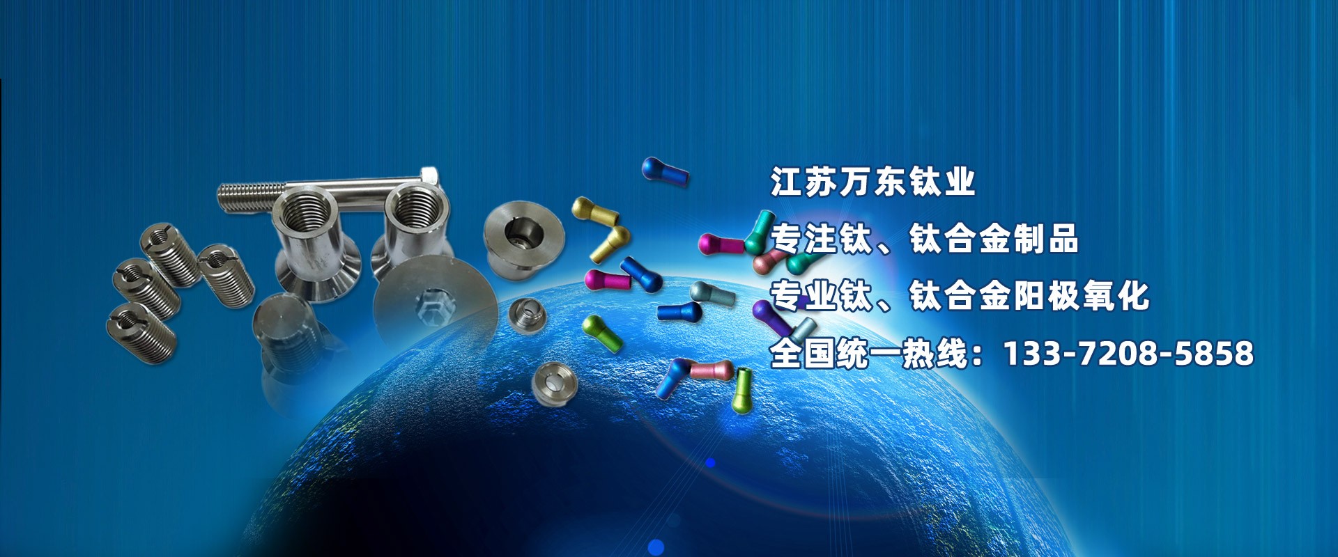 江蘇萬東鈦業(yè)科技有限公司坐落于中國(guó)江蘇省南通市,擁有28年的鈦合金研發(fā)技術(shù),公司專業(yè)從事:鈦陽極氧化、鈦合金陽極氧化、脈沖氧化。鈦合金緊固件生產(chǎn):M0.6以上高品質(zhì):螺絲、螺母、螺柱、螺套、可根據(jù)用戶的特殊要求定制。